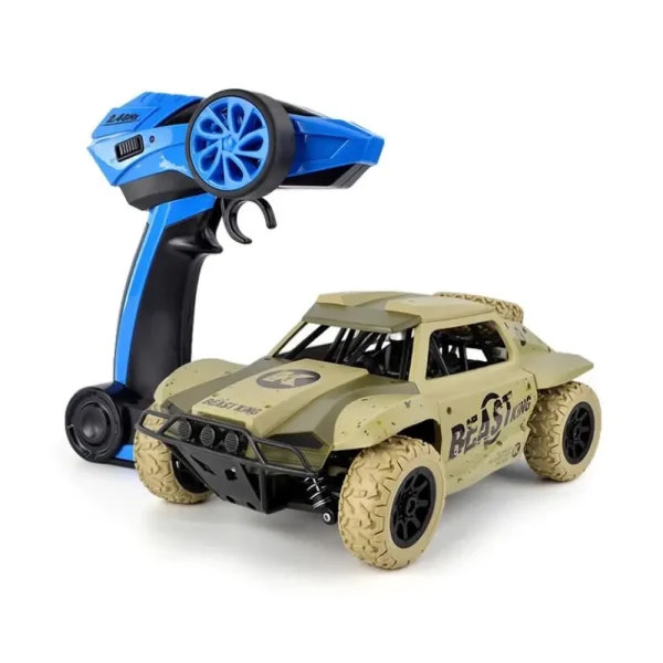 ماشین کنترلی آف رود ، یک محصول به شدت جذاب و سرگرم کننده است. این محصول دارای یک ریموت کنترل آبی رنگ می‌ باشد.
